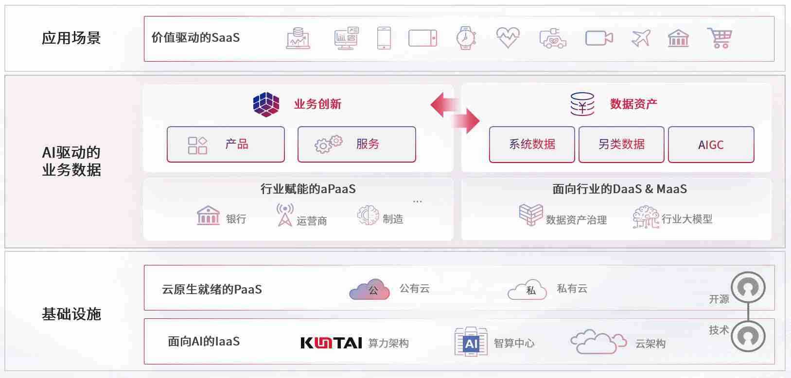 数字时代,,,,围绕企业数字化转型的关键要素,,LETOU国际米兰数码开创性的提出数云融合战略和技术体系框架,,,着力在云原生、、、、数字原生、、AI原生和信创产业上架构产品和服务能力,,,,为处在不同数字化转型阶段的快消零售、、、、汽车、、金融、、医疗、、政企、、、、教育、、、、运营商等行业客户提供泛在的敏捷IT能力和融合的数据驱动能力,,构建跨界融合创新的数字业务场景和新业务模式,,,助力企业级客户建立面向未来的核心能力和竞争优势,,,,全面推动社会的数字化、、智能化转型升级。。。