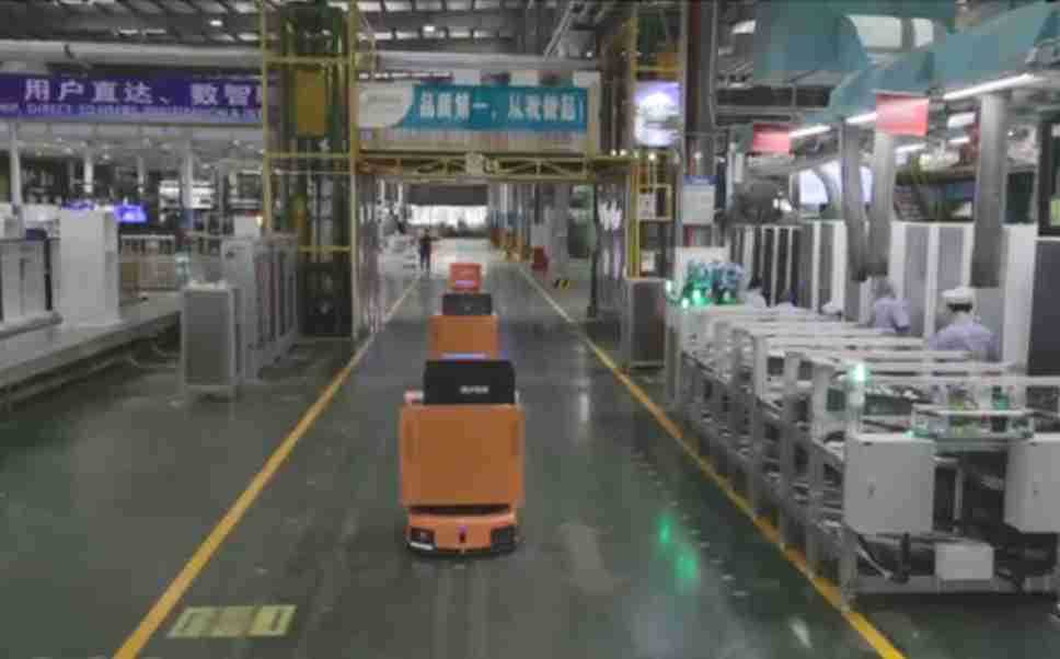 为车载冰箱物流配送打造的智能解决方案,,,包含产中物流通过潜伏举升AMR搬运至线边,,产后成品物流智能仓储,,流程包含产中物流智能齐套入库,,线边安灯叫料AMR智能配送至线边,,,,成品入库、、、、出库,,,通过无人堆高车机器人,,,,智能仓储管理替代人工作业管理,,,实现更高存储、、更高效率、、、、更具柔性化的解决方案。。。。